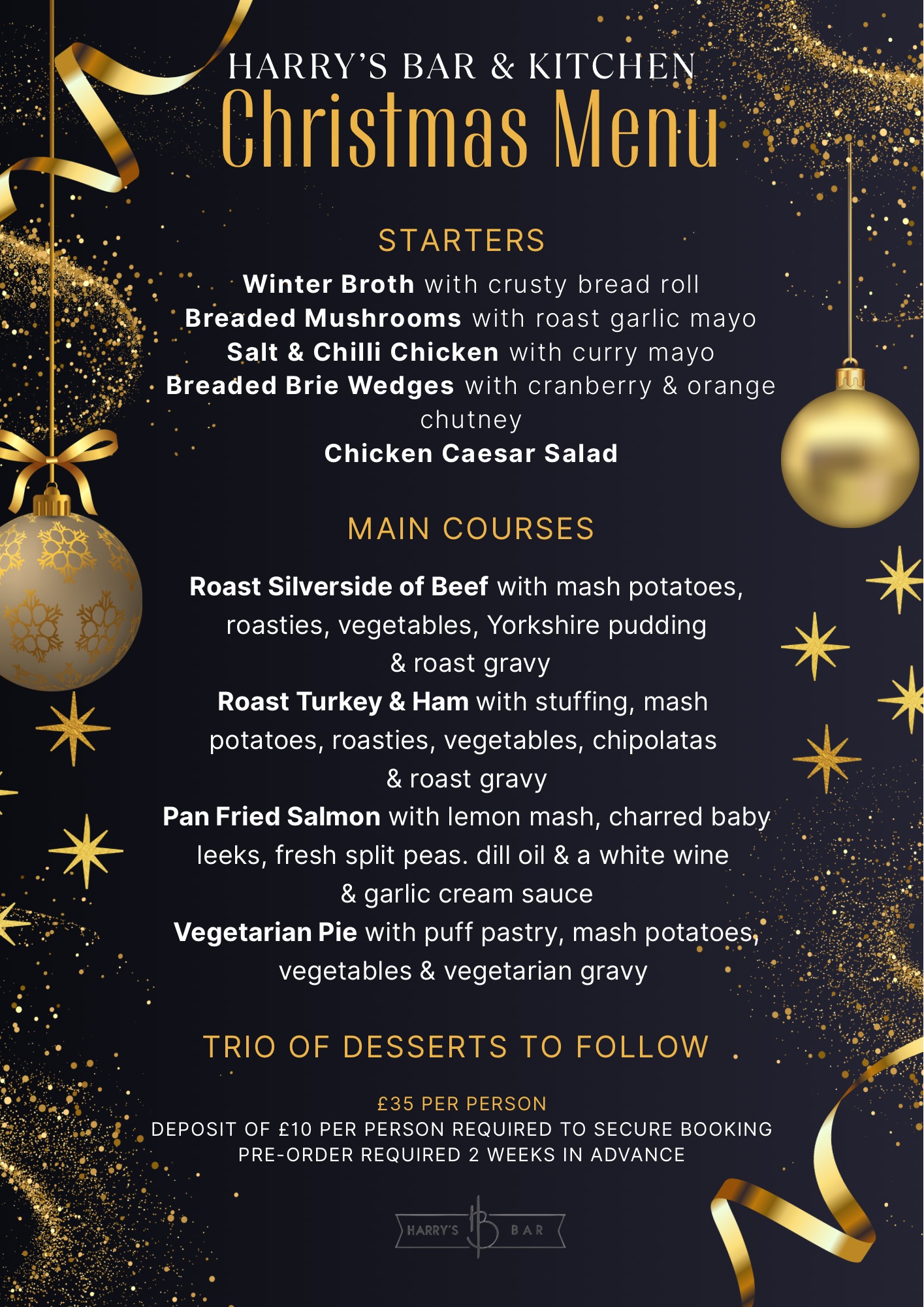 Celebrate the season with Harry’s. From winter warmers to traditional roasts and indulgent desserts, our Christmas menu is made for gathering, sharing and making memories.